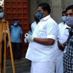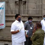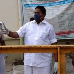 பின்னர் பொதுமக்கள் பயன்படுத்த சானிடைசர், முக-கவசம், கபசுர குடிநீர் ஆகிய உபகரணங்கள் வழங்கி, கோவிலுக்கு வரும் பக்தர்களிடம் தெர்மா ஸ்கேனர் மூலம் உடல் வெப்பநிலையைக் கண்டறிந்தார்.