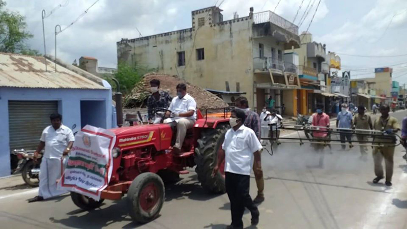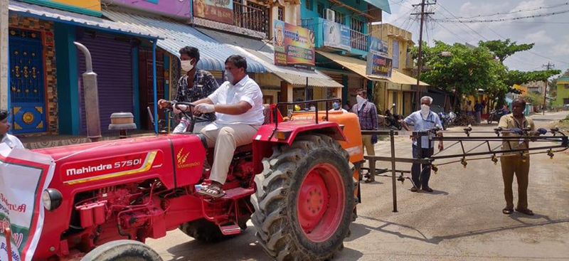 செங்கம் அடுத்த புதுப்பாளையம் பேரூராட்சியில் எம்எல்ஏ வி. பன்னீர்செல்வம் கிருமிநாசினி தெளிக்கும் பணியை தொடங்கி வைத்து நகரின் முக்கிய வீதிகளில் கிருமிநாசினி தெளித்தார்