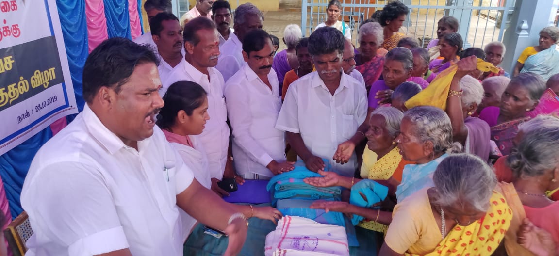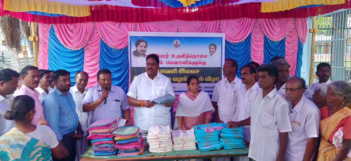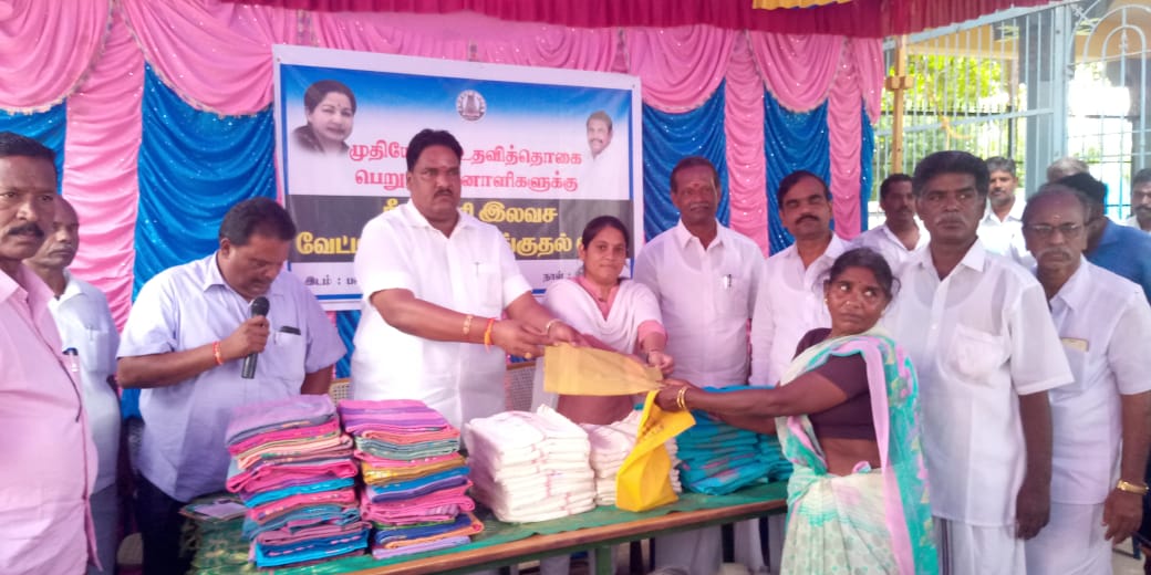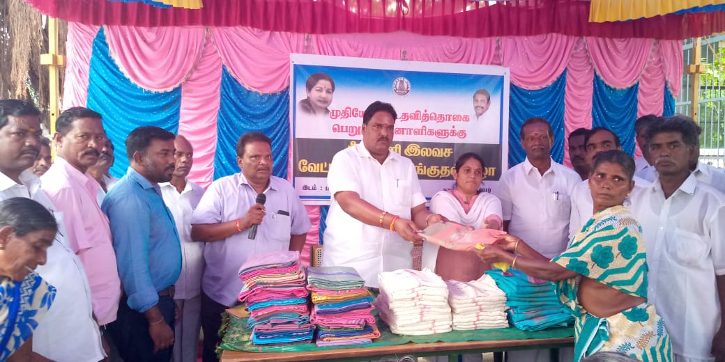 முதியோர் உதவித் தொகை பெறும் பயனாளிகளுக்கான இலவச சேலை வேட்டி வழங்கும் விழா