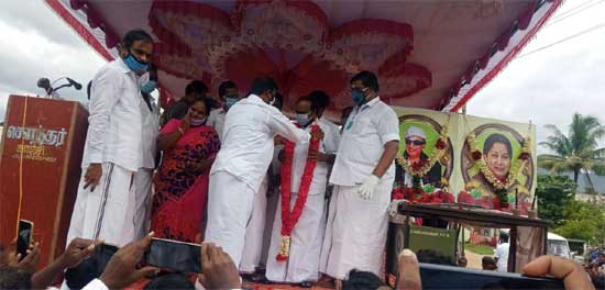 அவர்களை தாயுள்ளத்தோடு வரவேற்று வேட்டி சால்வை அணிவித்து கழகத்தில் இணைத்துக்கொண்டார்.